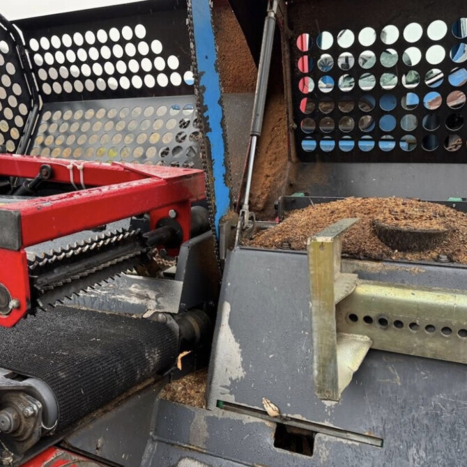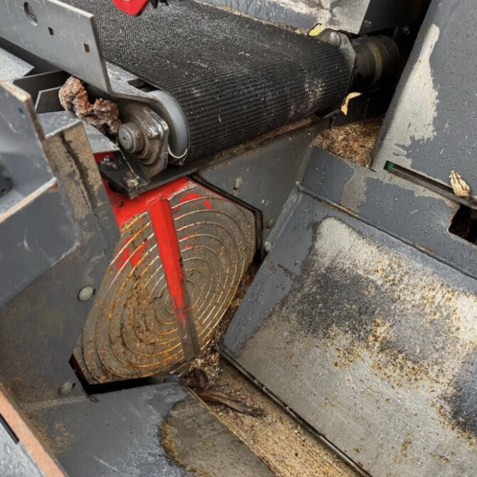 Spaltmaschine Palax KS45S mit Zuführer Palax Mega und Reinigungstrommel Palax Cleaner Plus mit Absaugung.