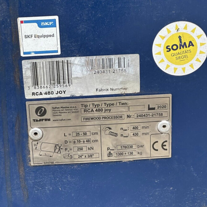 Zu verkaufen Automatische Spaltmaschine TAJFUN RCA 480 JOY, Baujahr 2020, bis zu einem Durchmesser von 48cm, Spaltdruck 25t. Der Preis beinhaltet: Absaugung HY10, Spaltkeil 12 St., Auslaufschacht. Bei Interesse haben wir einen Futtertisch oder einen zusätzlichen Elektromotor auf Lager. Der Preis ist ohne Mehrwertsteuer.