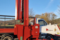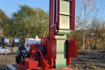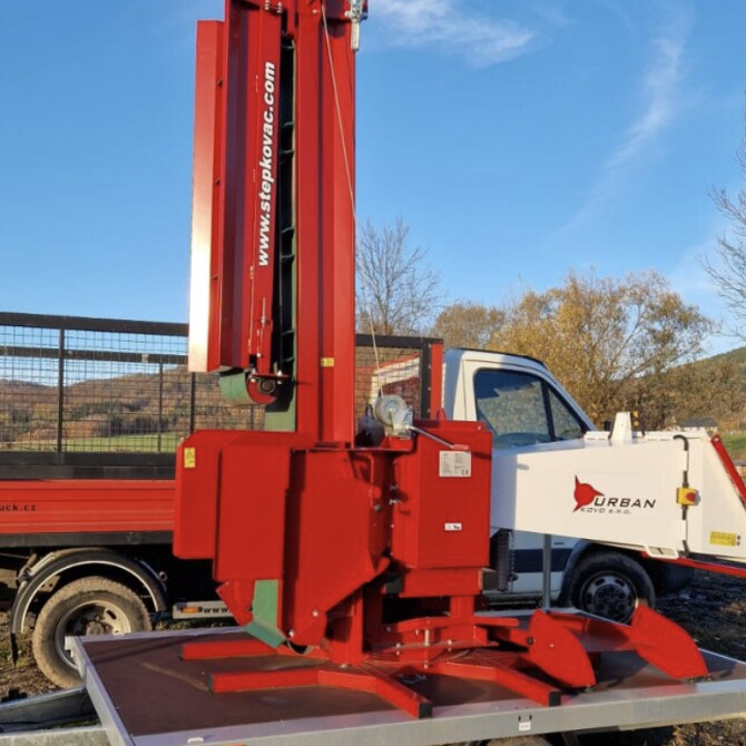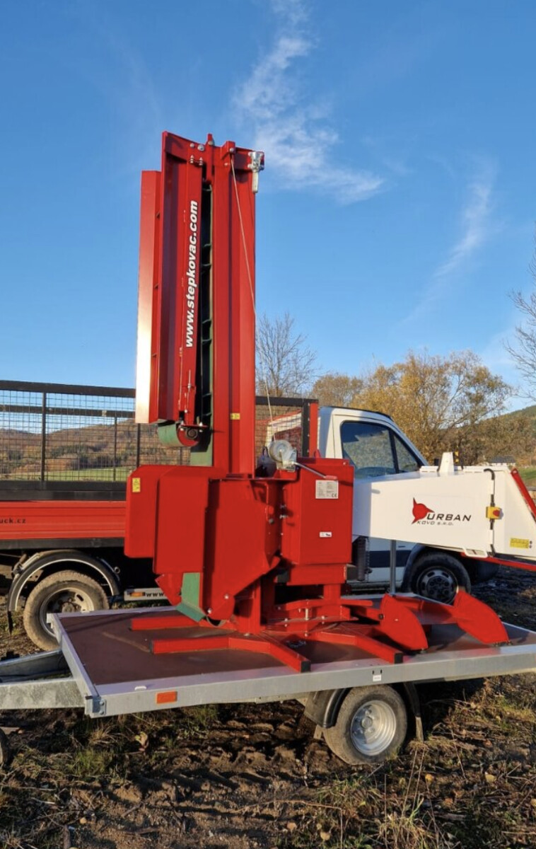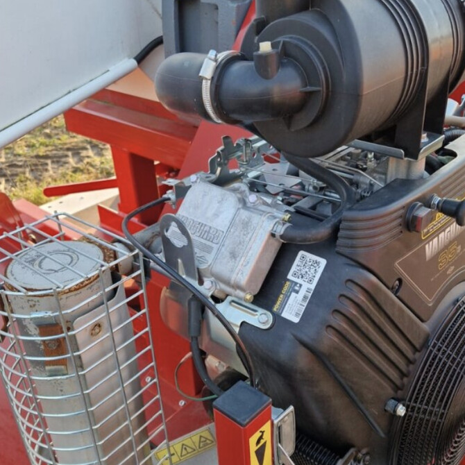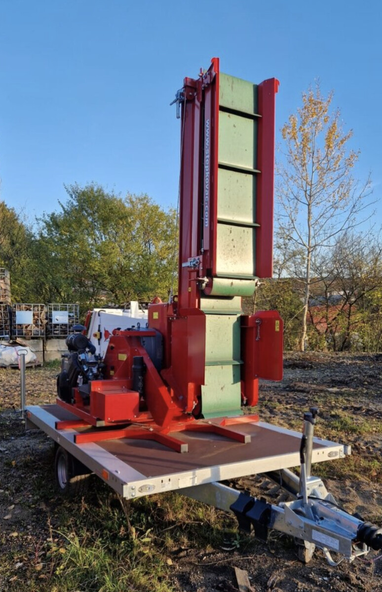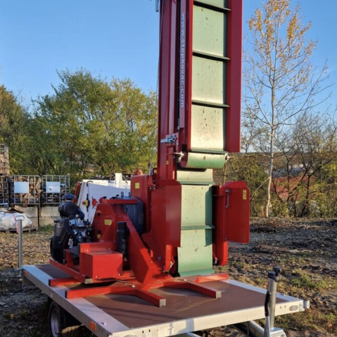 The URBAN SMH110 wood chipper (log splitter) is mobile and powerful. It is powered by a 35 hp Briggs & Stratton VANGUARD engine. The SMH110 has a road chassis with license plates and 13" wheels next to the loading area for easy transport to any location. The wood chipper is mounted on a 360° turntable on the trailer.