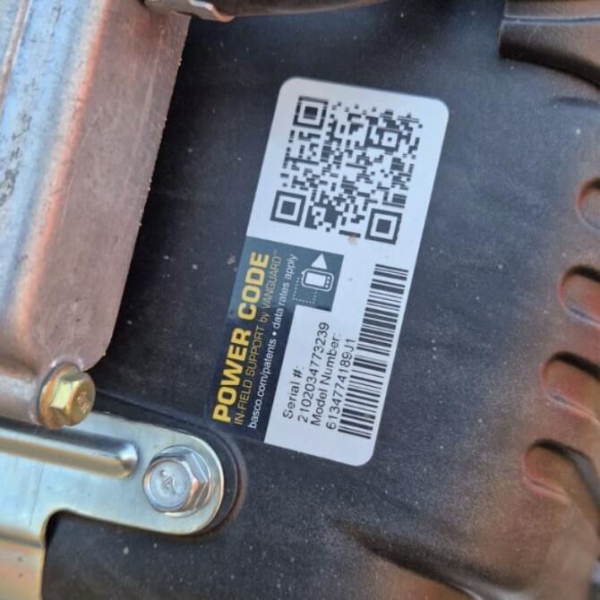 The machine includes: electric engine starter including battery, engine hour meter, operating instructions including declaration of conformity, and large technical certificate for the trailer.