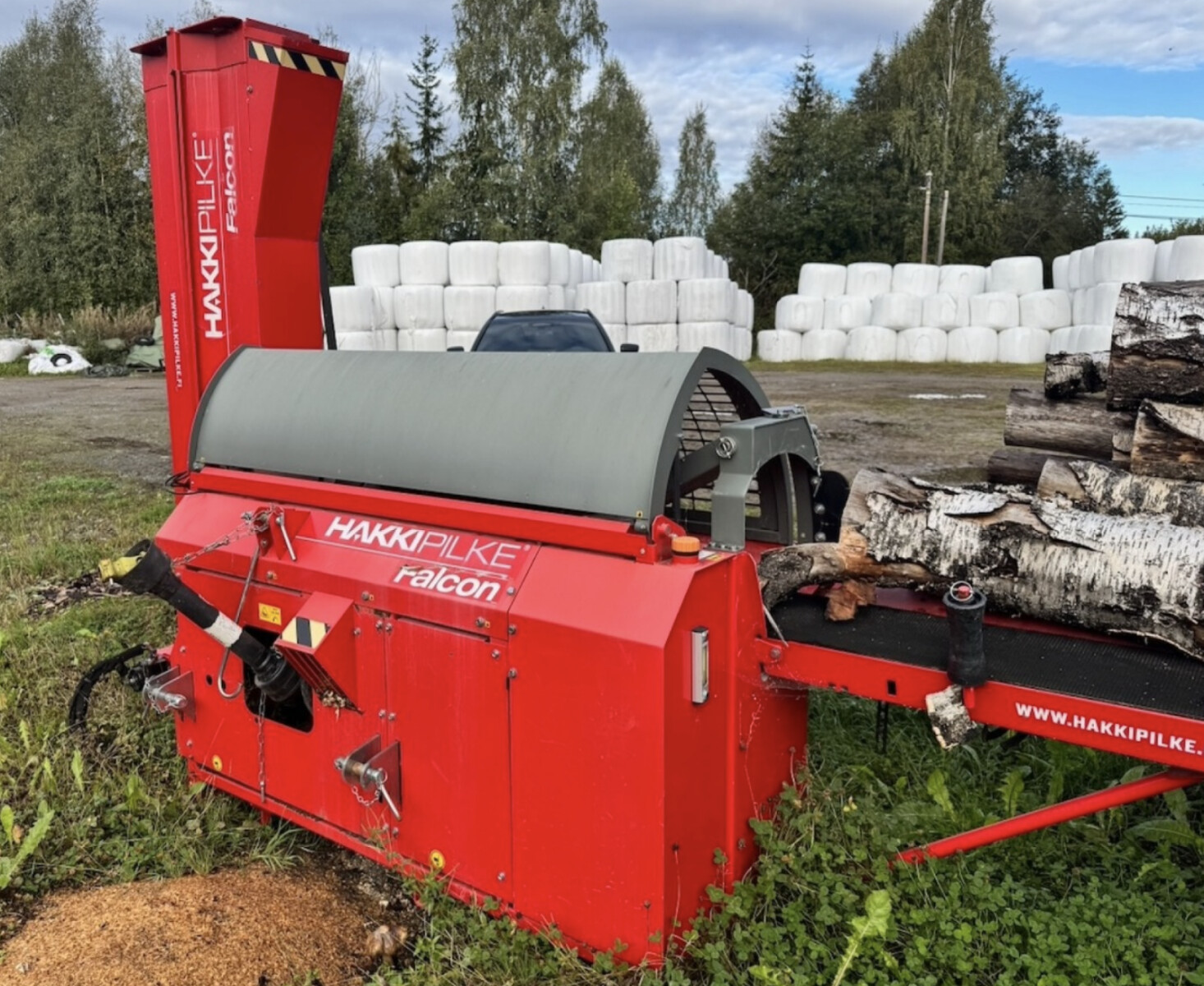 Hezký štípací automat Hakki Pilke 35 Falcon(nyní stejný model pod označením 37Falcon) do průměru 35cm po utažení větší lišty lze i 37cm. Štípací tlak 10tun, jednoduchý a naprosto spolehlivý stroj, který je osvědčený i z půjčovny a vydrží to nejnáročnější užívání. Pohon traktor PTO již od 25k stroj skladem od 16.9.2025 v Praze 4, dovoz zaškolení a servisní konzultace v ceně. Cena nového stroje se stolem 492000 plus dph