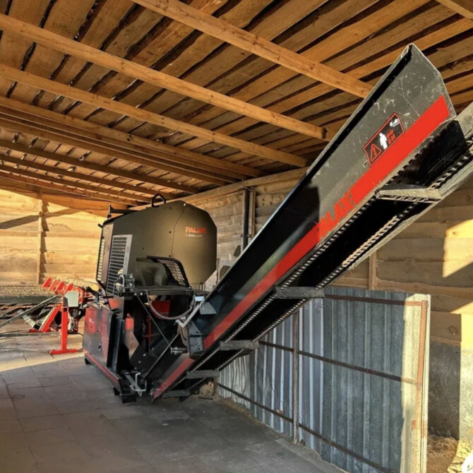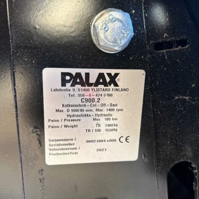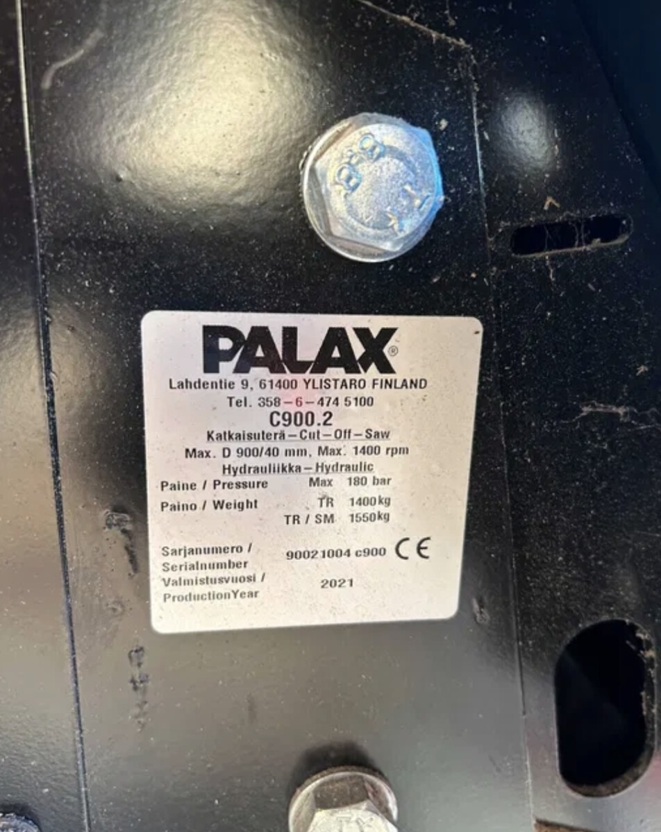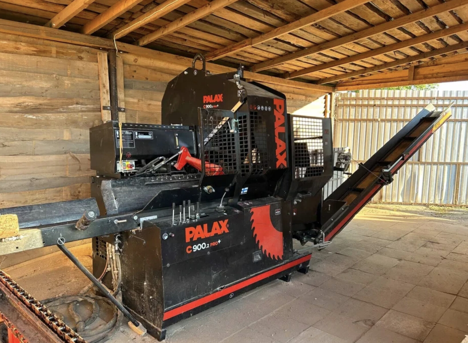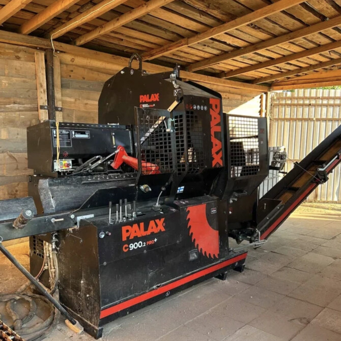 900mm pilový kotouč, určen pro profesionální použití a obsahuje několik unikátních řešení používaných společností Palax. Kromě pilového listu s karbidovými hroty zvyšuje produktivitu stroje a automatický vysokorychlostní štípací ventil. Plně hydraulické ovládání funkcí , dopravník pro přívod dřeva a 4,3 m dlouhý dopravník přepravující hotový materiál urychlují a usnadňují práci.