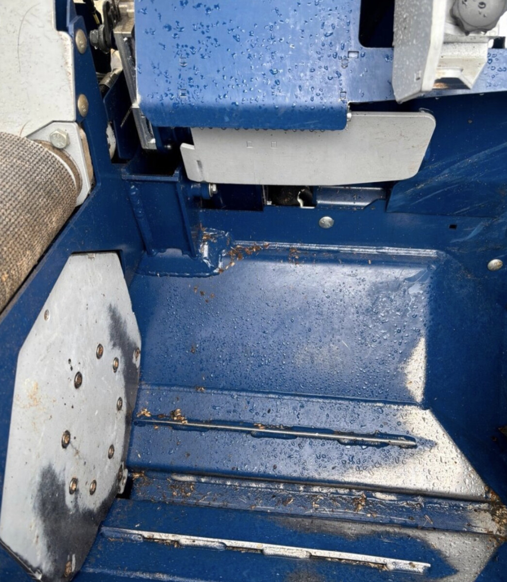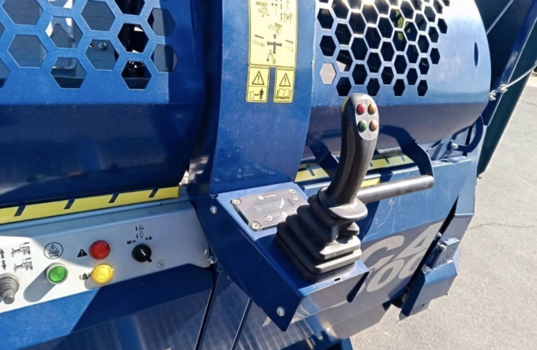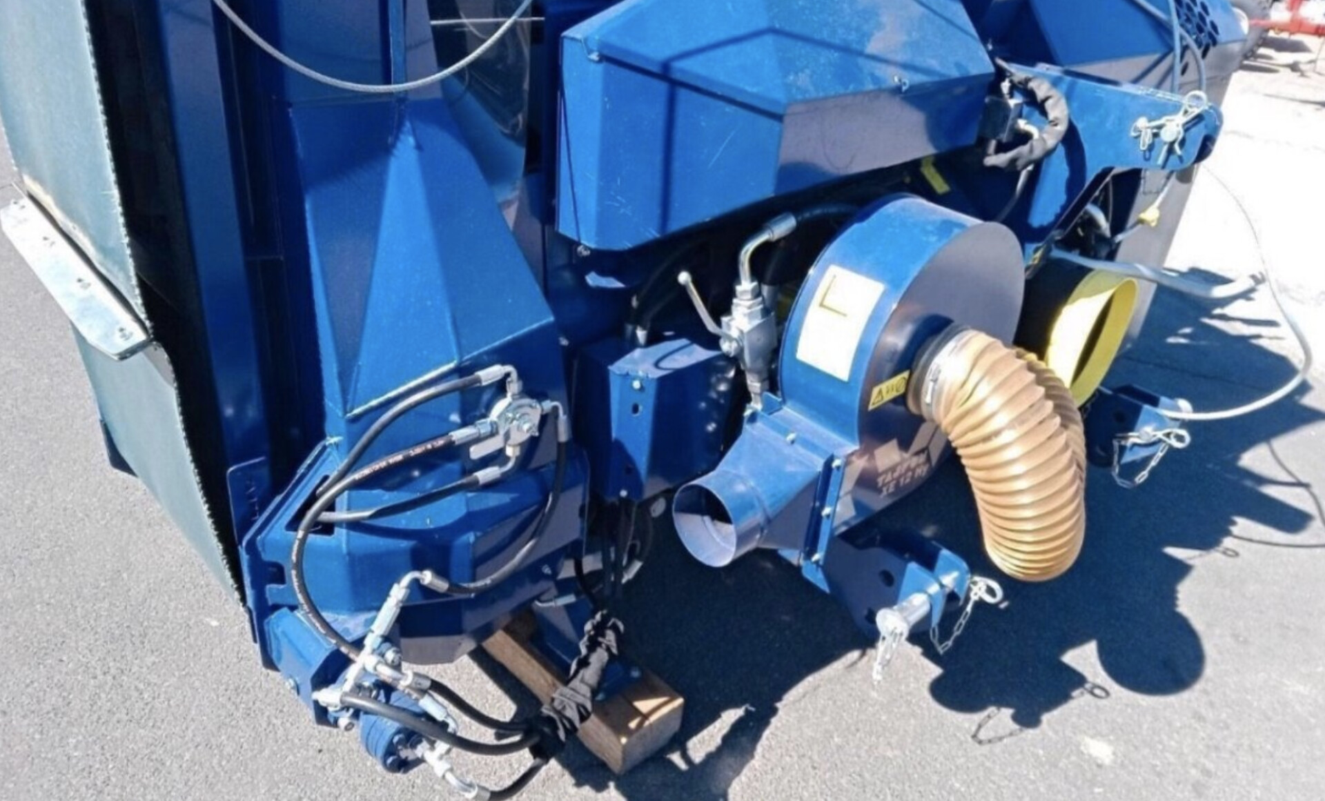 3dílný teleskopický dopravní pás s automatickým hydraulickým napínáním pásu a dvojčinným válcem, délka 5 000 mm, šířka 580 mm, plynule nastavitelná rychlost dopravy, pohon s dvojitým ložiskem