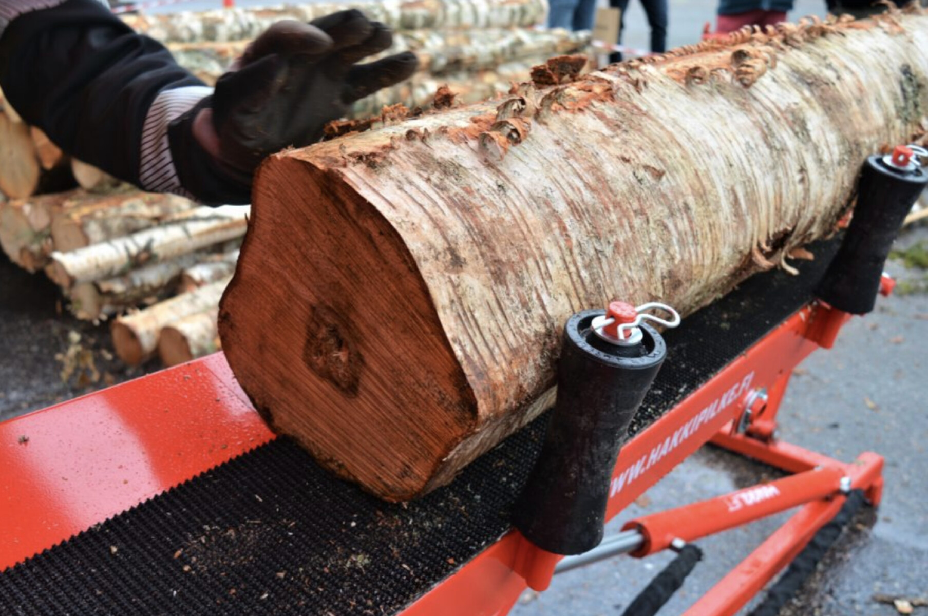 - Pomocí hydraulické pístnice se kulatina zvedne do úrovně podávacího pasu a bez námahy tak zvedáte kulatinu na zpracování.